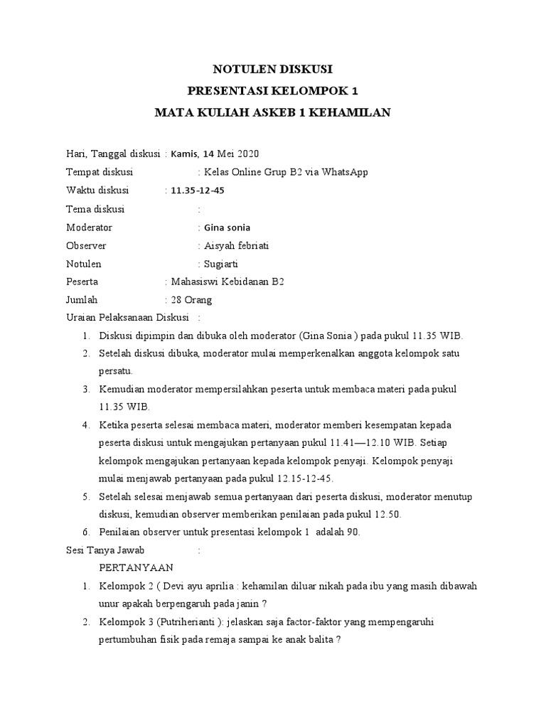 Notulen Diskusi Kelompok Askeb 1 Pdf