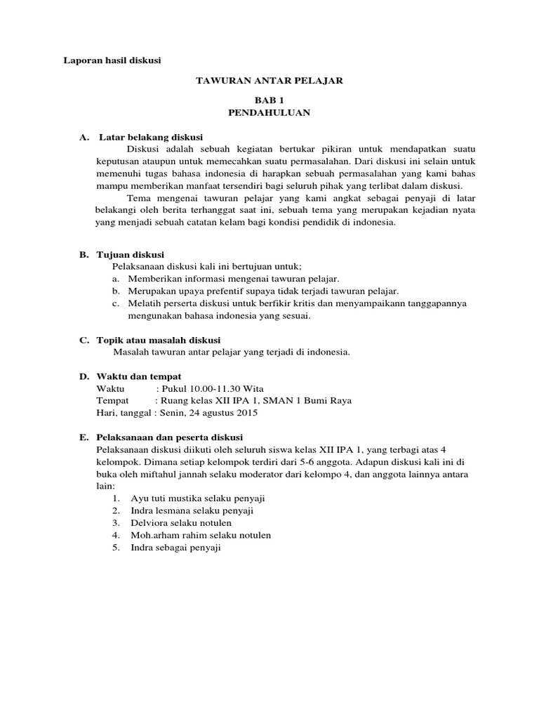 Contoh Laporan Hasil Diskusi Pdf